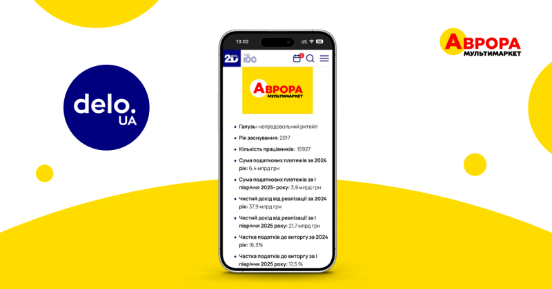 «Аврора» — у ТОП-100 приватних платників податків 2025 року за дослідженням Delo.ua